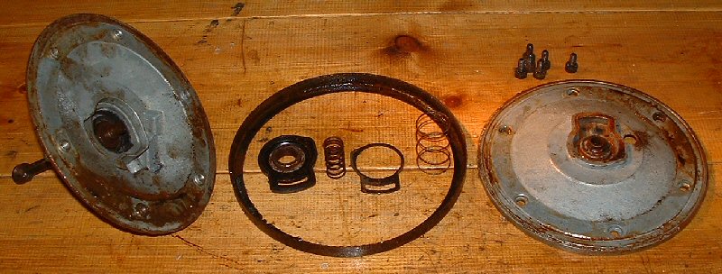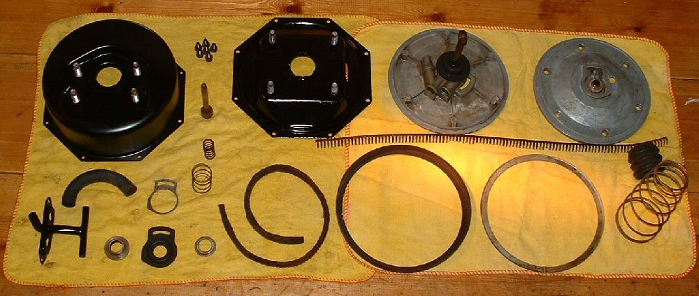 halves and remove the leather piston seal, the poppet valve and spring, the diaphragm assembly and the valve return
