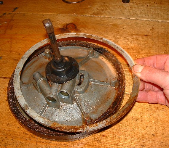 face of the piston assembly with the return spring, and right is the inside of the vacuum cylinder and its unwanted