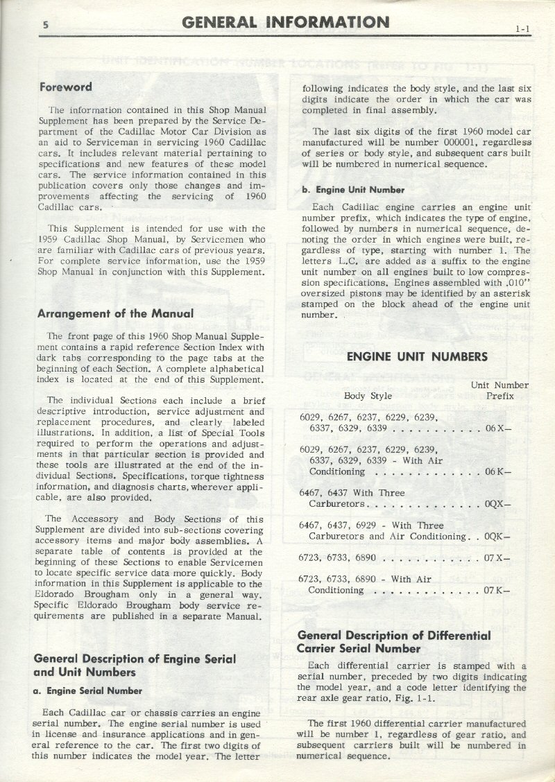 Cadillac » Shop Manual » 1960 Supplement » General Information » 1-1 |